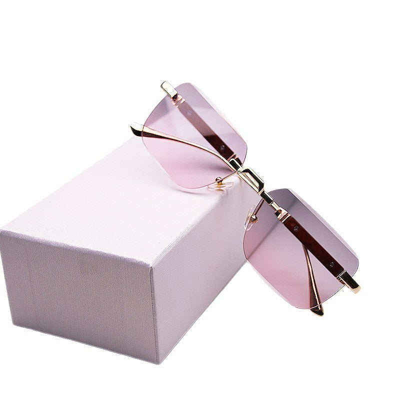 Frameless Edge-cut Sunglasses Fashion Trend Wood Grain Legs Gradient Color